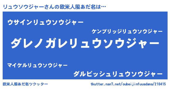 | 意味不明あだ名 | 『住所不定無職リュウソウジャー(12歳)』 |