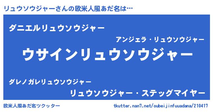 | ポケモン風あだ名 | 『ヒリュウソウジャー』『リックウザ』 |