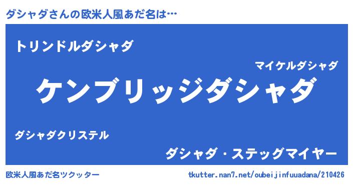 | 男性向けラノベタイトル風あだ名 | 『魔法科高校のダシャダ』 |