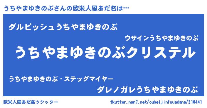 | 男性向けラノベタイトル風あだ名 | 『やはりうちやまゆきのぶの青春ラブコメはまちがっている 』 |