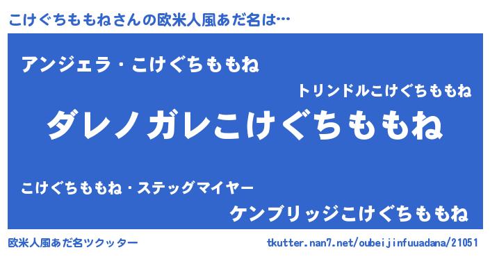 | 男性向けラノベタイトル風あだ名 | 『魔弾の王とこけぐちももね』 |