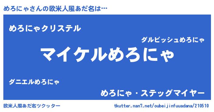 | 意味不明あだ名 | 『ペロリンめろにゃ』『永久保存めろにゃ』 |