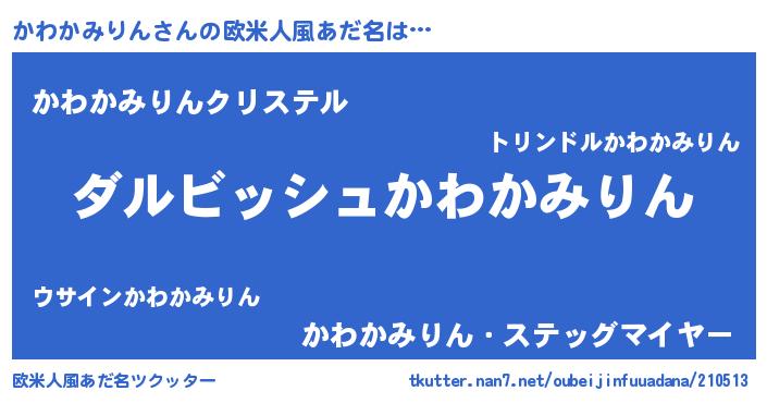 | 女子向けラノベタイトル風あだ名 | 『異世界で失敗しない100のかわかみりん』 |