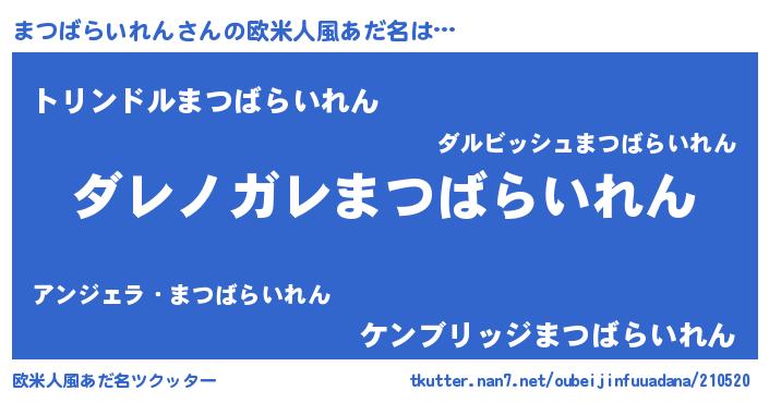 | 女子向けラノベタイトル風あだ名 | 『乙女ゲームの破滅フラグしかない悪役まつばらいれんに転生してしまった…』 |