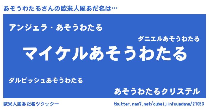 | 男性向けラノベタイトル風あだ名 | 『あそうわたるの憂鬱』 |