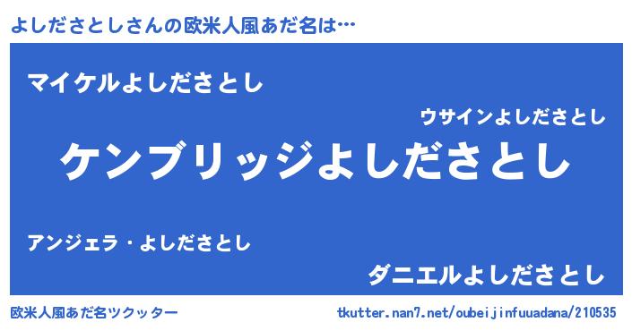 | 女子向けラノベタイトル風あだ名 | 『よしださとしストレイドッグス』 |