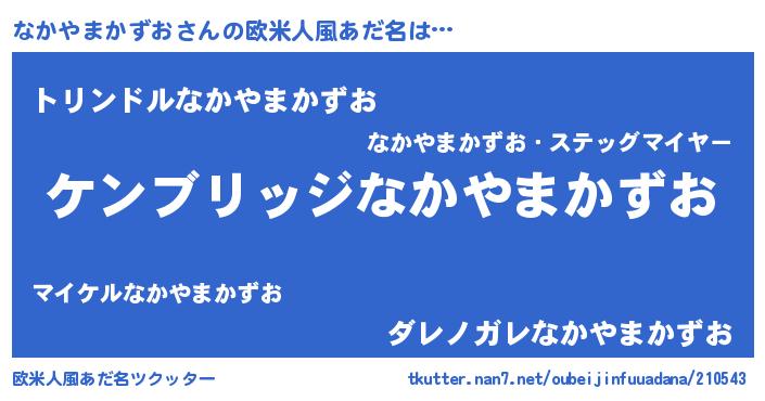 | 男性向けラノベタイトル風あだ名 | 『魔法科高校のなかやまかずお』 |
