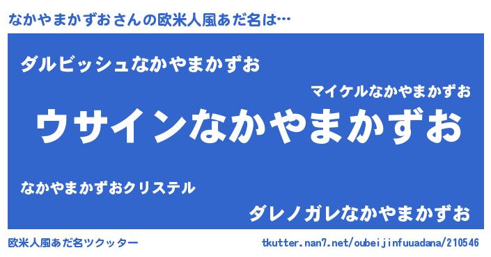 | 男性向けラノベタイトル風あだ名 | 『ダンジョンになかやまかずおを求めるのは間違っているだろうか』 |