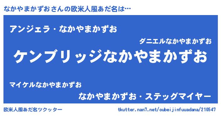 | 男性向けラノベタイトル風あだ名 | 『Re:なかやまかずおから始める異世界生活』 |