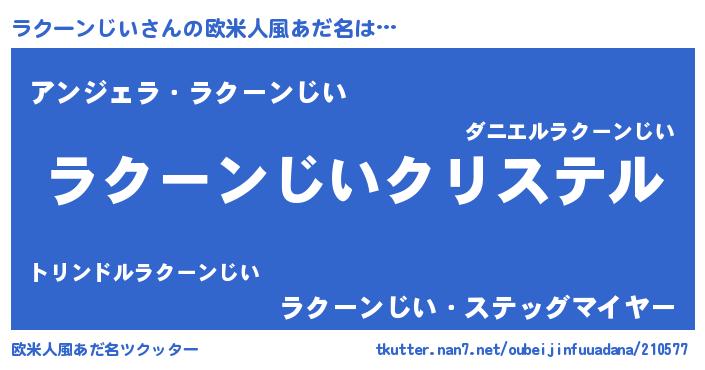 | 意味不明あだ名 | 『ラクーンじいフォーエバー』 |
