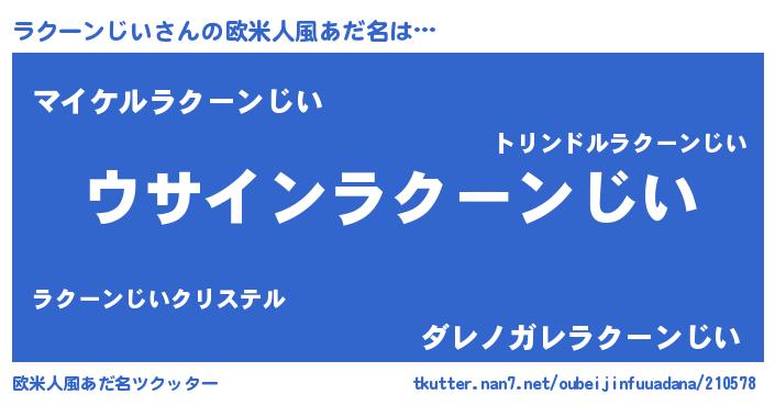 | 女子向けラノベタイトル風あだ名 | 『ラクーンじいの卵を拾いまして』 |