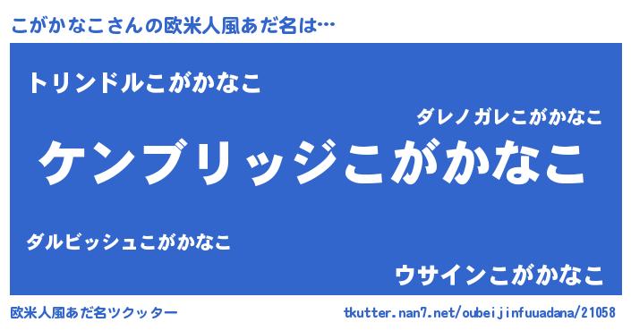 | 男性向けラノベタイトル風あだ名 | 『Re:こがかなこから始める異世界生活』 |
