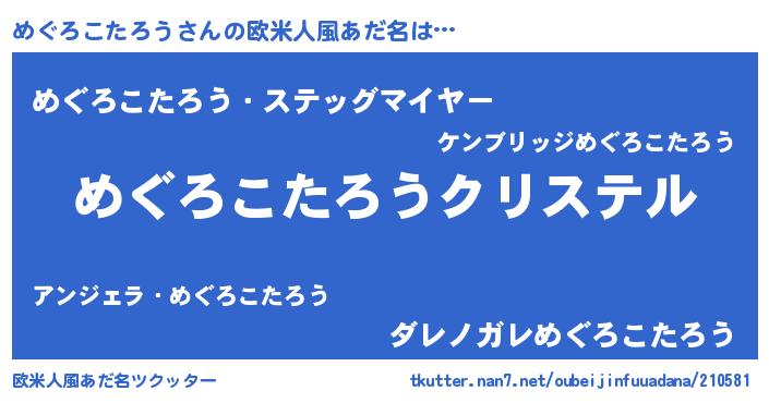 | 意味不明あだ名 | 『めぐろこたろうフォーエバー』 |