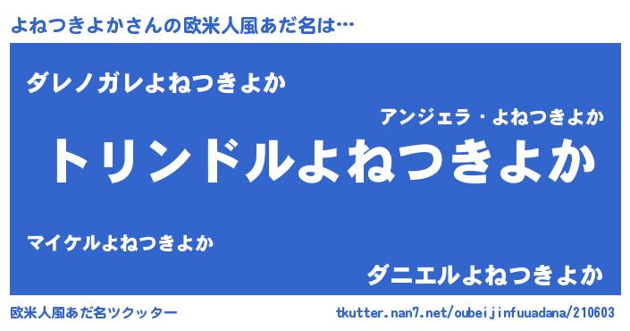| 男性向けラノベタイトル風あだ名 | 『よねつきよか~年齢イコール彼女いない歴の魔法使い~』 |