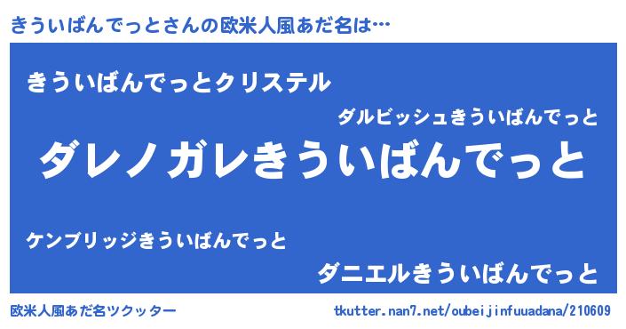 | 男性向けラノベタイトル風あだ名 | 『この素晴らしい世界にきういばんでっとを!』 |