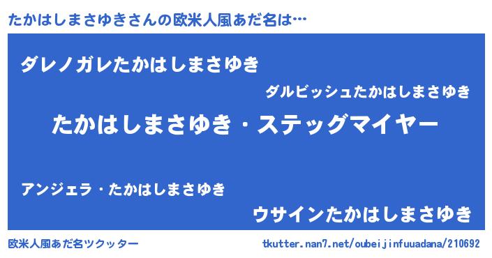 | 男性向けラノベタイトル風あだ名 | 『うちのたかはしまさゆきが世界を掌握している!』 |