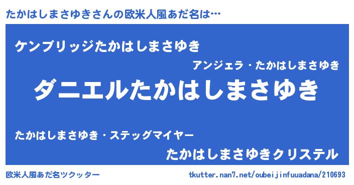 | 男性向けラノベタイトル風あだ名 | 『おまえをオタクにしてやるから、俺をたかはしまさゆきにしてくれ! 』 |