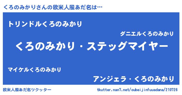 | 男性向けラノベタイトル風あだ名 | 『冴えないくろのみかりの育てかた』 |