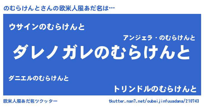| 意味不明あだ名 | 『住所不定無職のむらけんと(12歳)』 |
