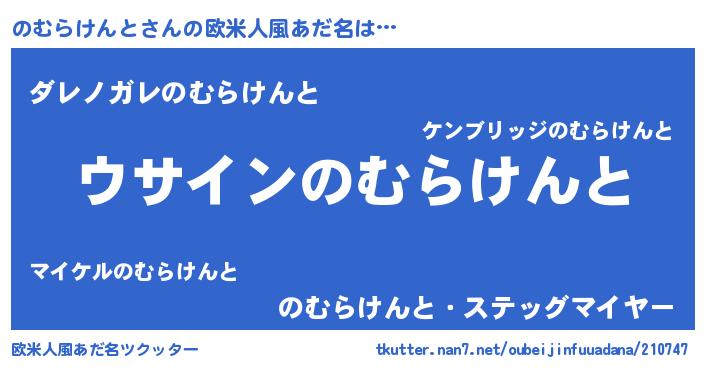 | 女子向けラノベタイトル風あだ名 | 『のむらけんと様がみてる』 |