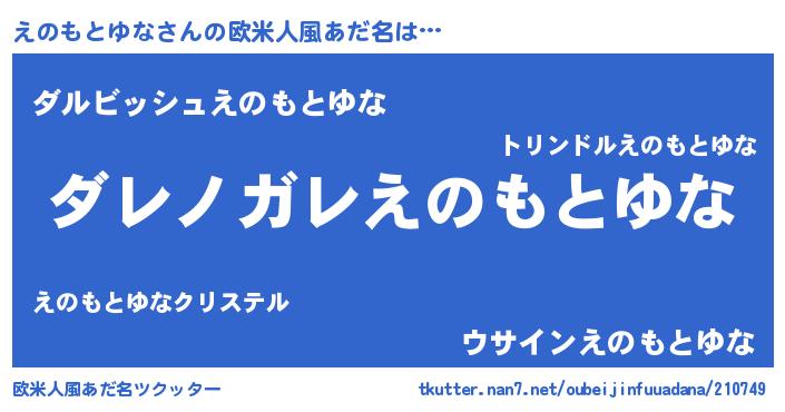 | 女子向けラノベタイトル風あだ名 | 『乙女ゲームの破滅フラグしかない悪役えのもとゆなに転生してしまった…』 |