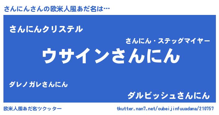 | 男性向けラノベタイトル風あだ名 | 『さんにんの嫁は女の子じゃないと思った?』 |