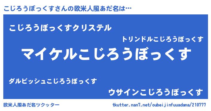 | 男性向けラノベタイトル風あだ名 | 『こじろうぼっくすの憂鬱』 |
