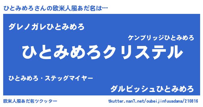 | ヒーロー風カッコイイあだ名 | 『ウルトラひとみめろマン』 |