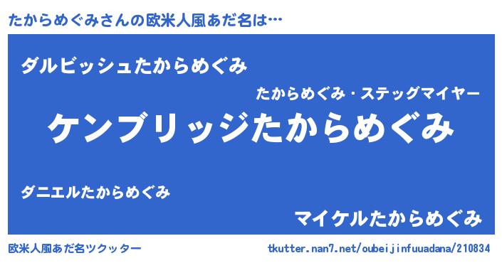 | 意味不明あだ名 | 『自称たからめぐみ』 |