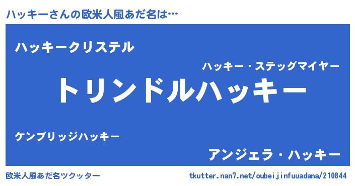 | 女子向けラノベタイトル風あだ名 | 『ハッキーの玉の輿計画!』 |