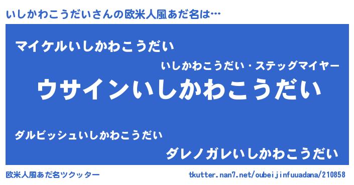 | 男性向けラノベタイトル風あだ名 | 『ダンジョンにいしかわこうだいを求めるのは間違っているだろうか』 |