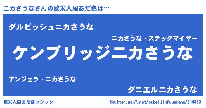 | 男性向けラノベタイトル風あだ名 | 『Re:ニカさうなから始める異世界生活』 |