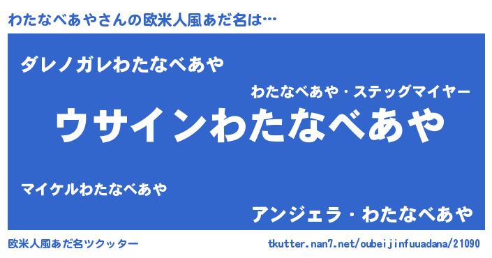 | 男性向けラノベタイトル風あだ名 | 『わたなべあやの嫁は女の子じゃないと思った?』 |
