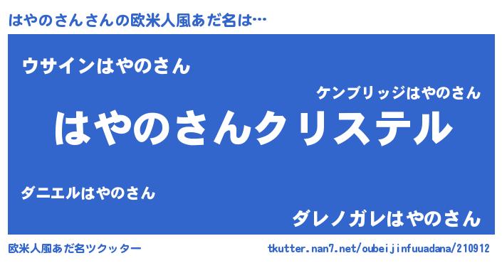 | ポケモン風あだ名 | 『ハヤノダネ』『ヒハヤノサン』 |