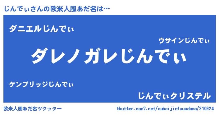 | 男性向けラノベタイトル風あだ名 | 『この素晴らしい世界にじんでぃを!』 |