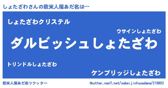 | 男性向けラノベタイトル風あだ名 | 『しょたざわという概念が存在しない退屈な世界 』 |