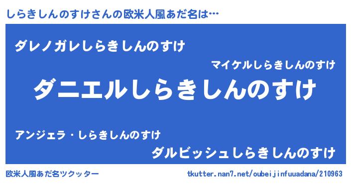 | 男性向けラノベタイトル風あだ名 | 『ノーゲーム・ノーシラキシンノスケ』 |