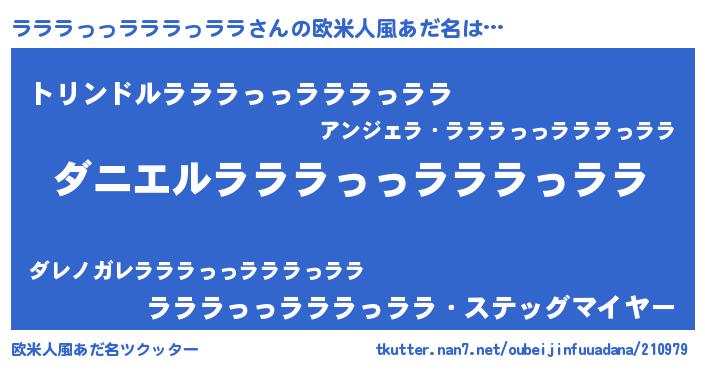 | 男性向けラノベタイトル風あだ名 | 『おまえをオタクにしてやるから、俺をラララっっラララっララにしてくれ! 』 |