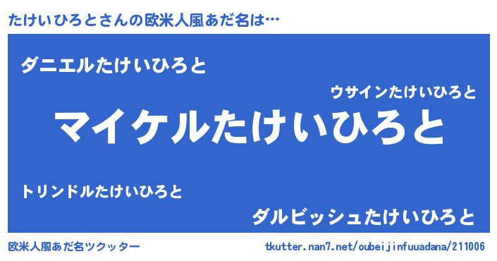 | 男性向けラノベタイトル風あだ名 | 『タケイヒロトアートオンライン』 |