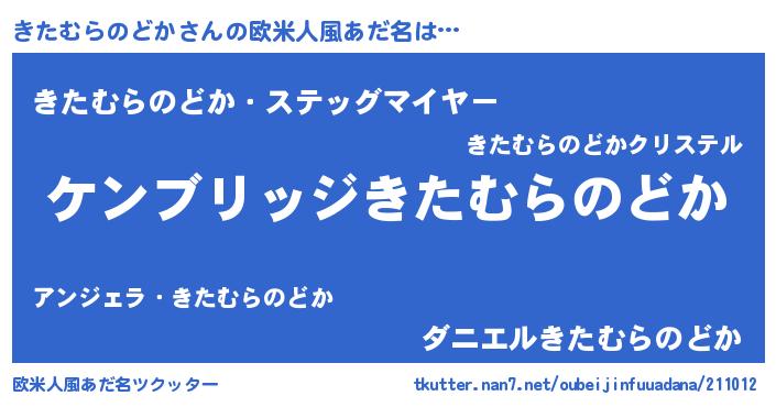 | 男性向けラノベタイトル風あだ名 | 『Re:きたむらのどかから始める異世界生活』 |