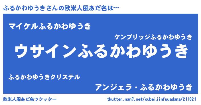 | 女子向けラノベタイトル風あだ名 | 『ふるかわゆうきの卵を拾いまして』 |