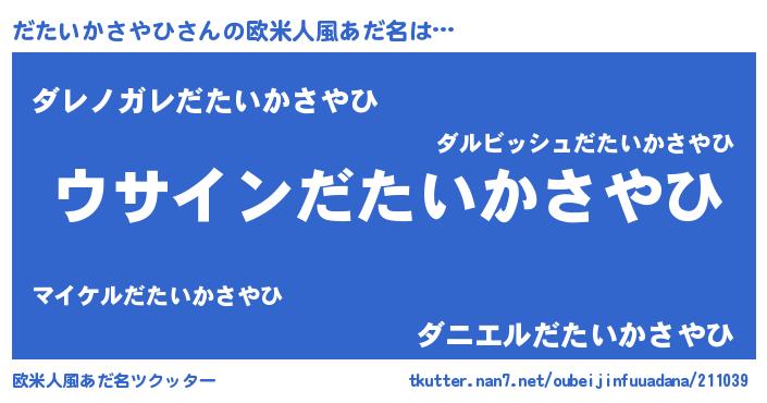 | 意味不明あだ名 | 『とにかく怪しいだたいかさやひ』 |