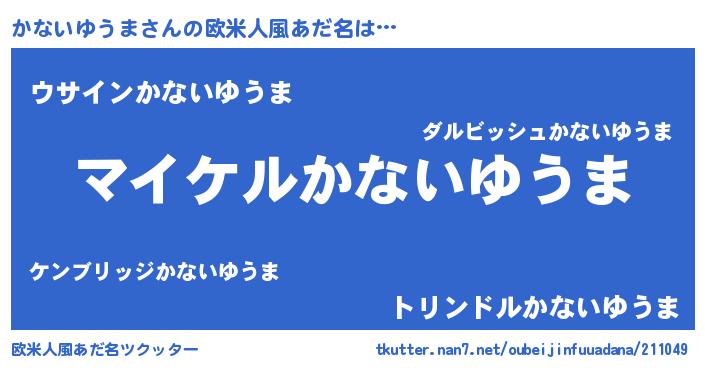 | 男性向けラノベタイトル風あだ名 | 『カナイユウマアートオンライン』 |