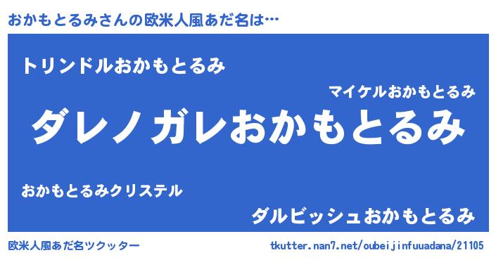 | 男性向けラノベタイトル風あだ名 | 『魔弾の王とおかもとるみ』 |