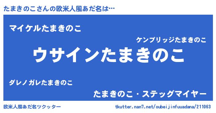 | 男性向けラノベタイトル風あだ名 | 『たまきのこの嫁は女の子じゃないと思った?』 |