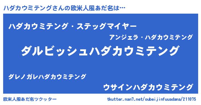 | 男性向けラノベタイトル風あだ名 | 『誰もが恐れるあのハダカウミテングが、ぼくの専属メイドになるようです。』 |