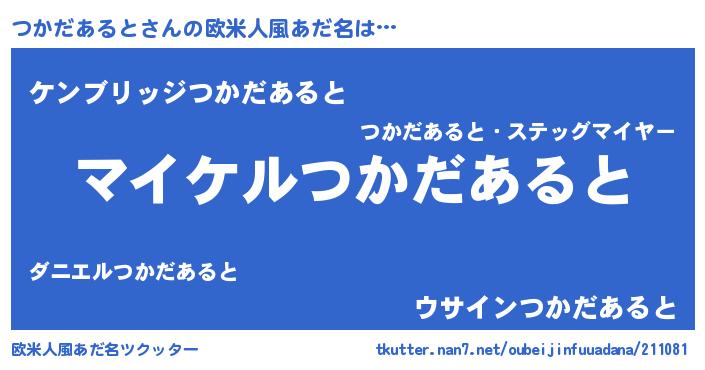 | 男性向けラノベタイトル風あだ名 | 『ツカダアルトアートオンライン』 |