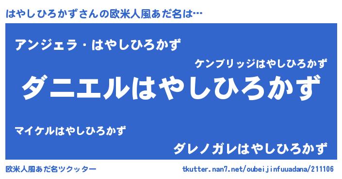 | 男性向けラノベタイトル風あだ名 | 『ノーゲーム・ノーハヤシヒロカズ』 |