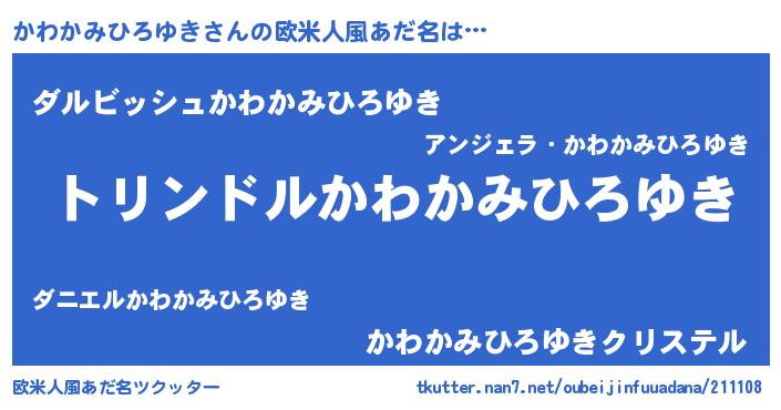 | ヘコむあだ名 | 『かわかみひろゆき(小並感)』『酢こんぶ』 |