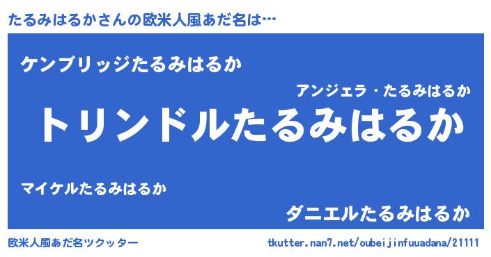 | 男性向けラノベタイトル風あだ名 | 『たるみはるか~年齢イコール彼女いない歴の魔法使い~』 |